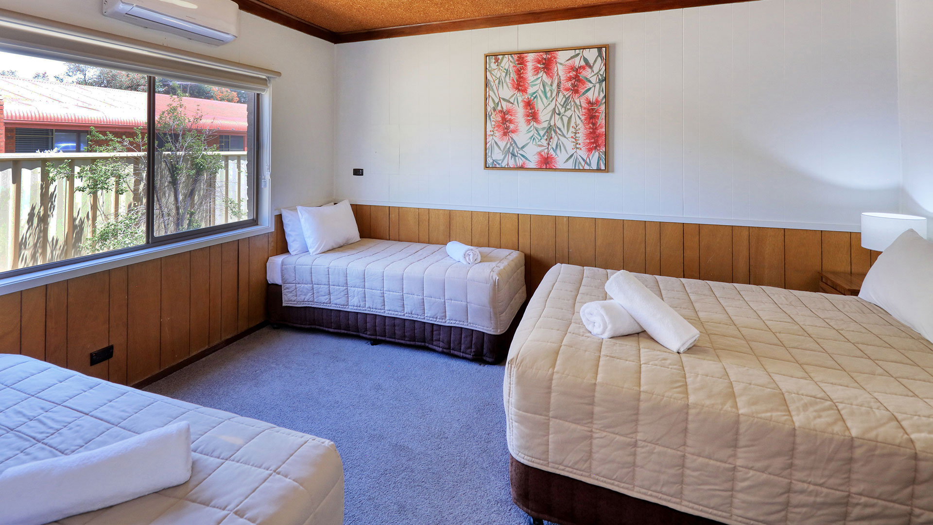 Spacious Self-Contained Apartment including Queen bed and two standard Singles, ensuite bathroom and full kitchen.