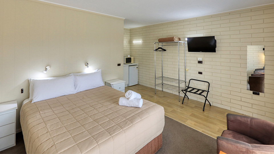 microwave | bar fridge | toaster | cutlery | crockery